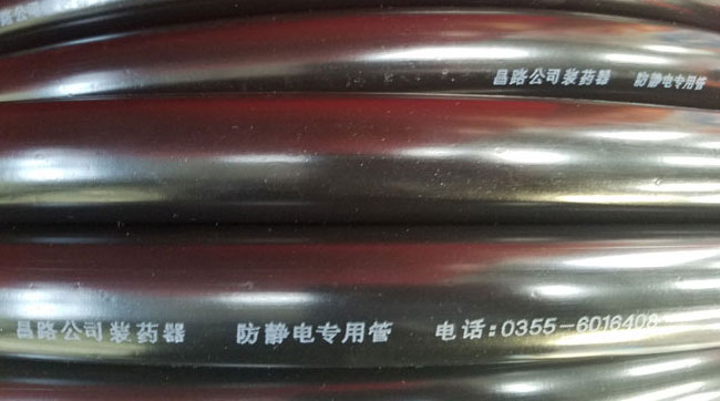 裝藥器專用半導(dǎo)體防靜電輸藥膠管,是裝藥器在輸藥過程中唯一專用管材,具有導(dǎo)電、防火花、耐壓、耐酸、防腐、耐磨損等作用,是裝藥器在輸藥過程中確保人身安全,杜絕重大事故隱患的特殊管材。